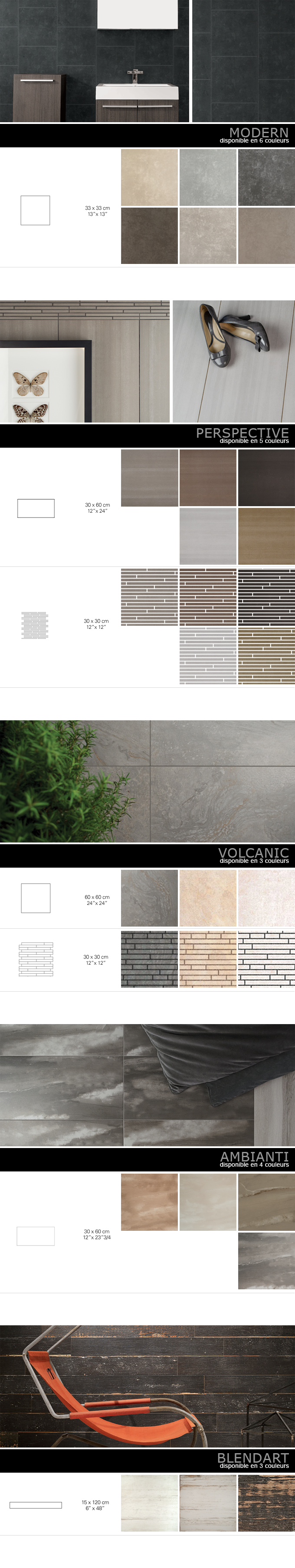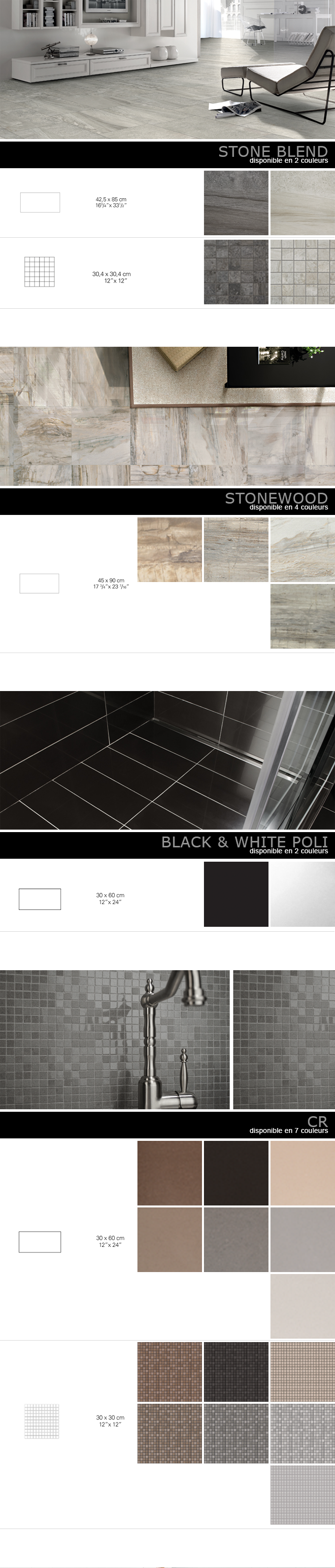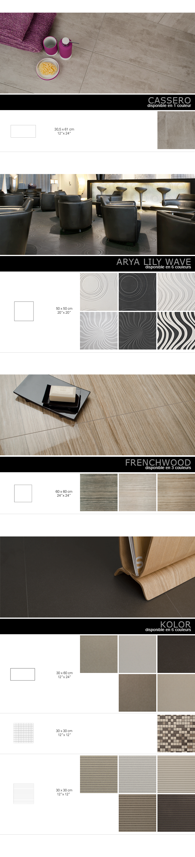 possède une grande variété de produits de céramique ou marbre;