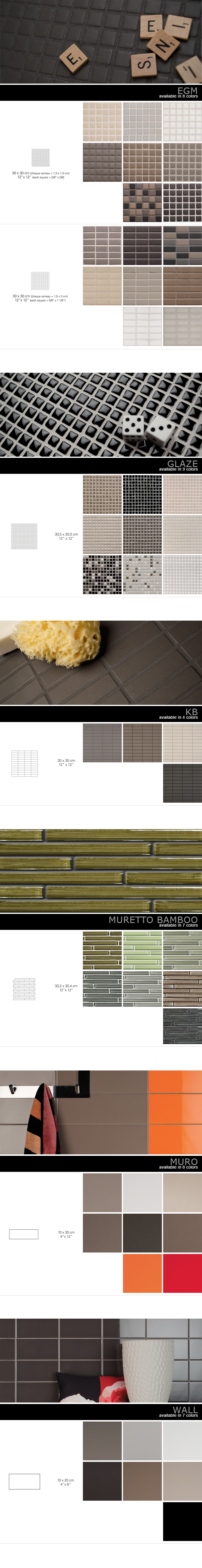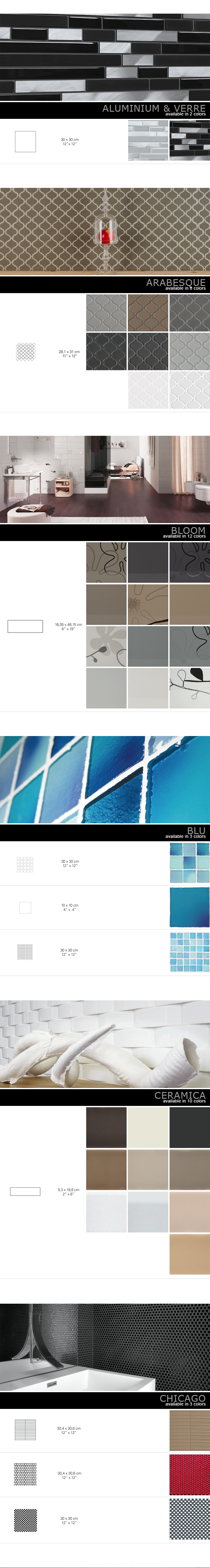 Consist in a range of glass paste mosaic, ceramic or natural stone.