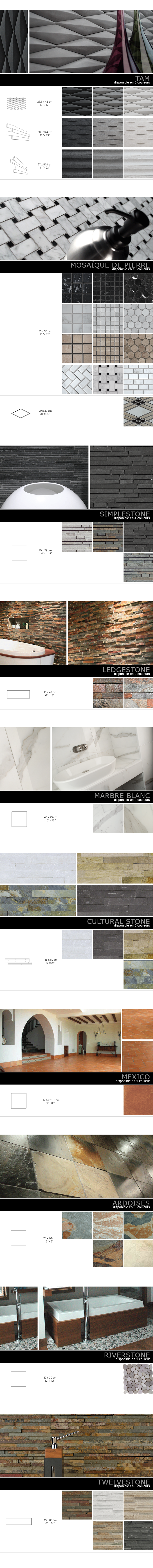 Gamme de produits de mosaiques murales et de revêtements de sol.