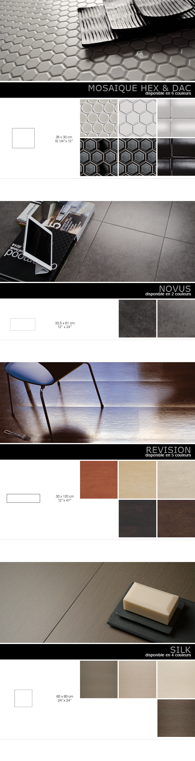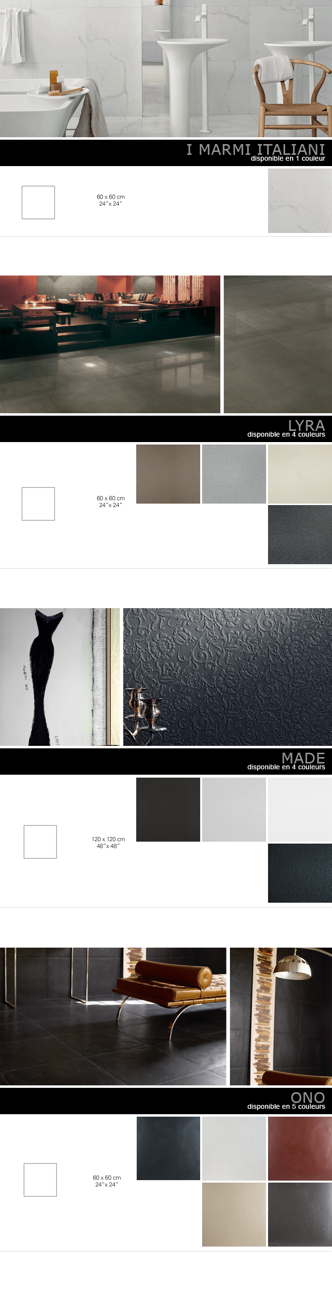 possède une grande variété de produits de céramique ou marbre;